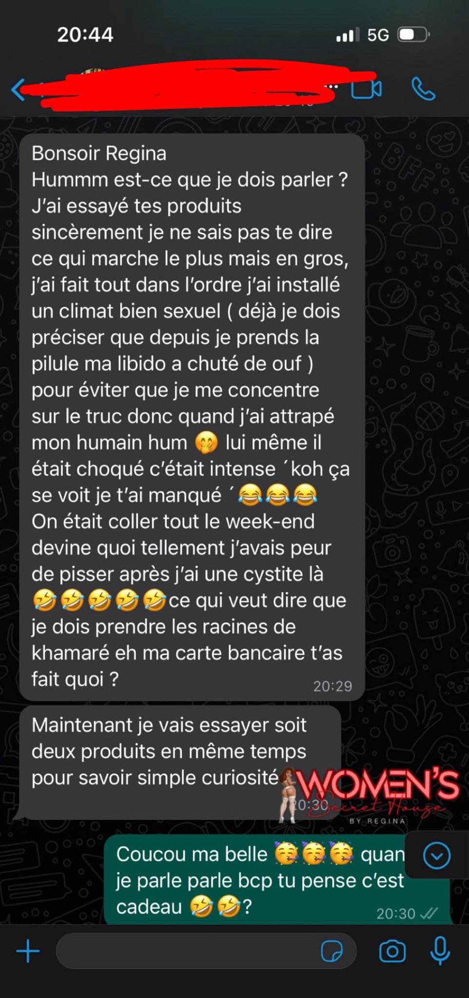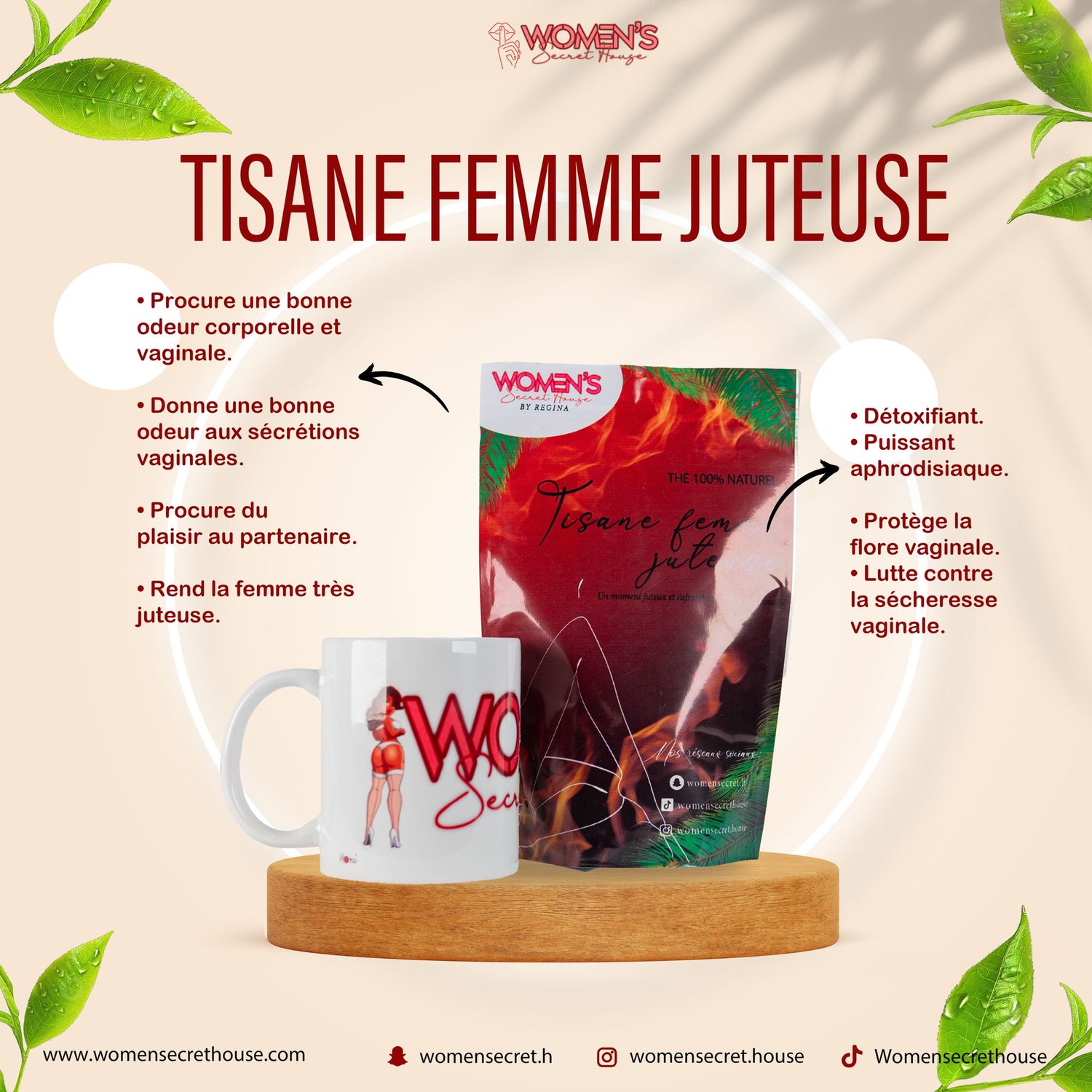 🌸 Chez Women's, nous offrons une expérience unique pour votre sexualité. Nos produits naturels répondent à vos besoins intimes : aphrodisiaques, thés détox, jeux pour adultes, lingeries 👙, et une sélection spéciale pour hommes. Faites-nous confiance pour raviver la passion ☀️ et améliorer votre bien-être. Bienvenue chez Women's Secret House.